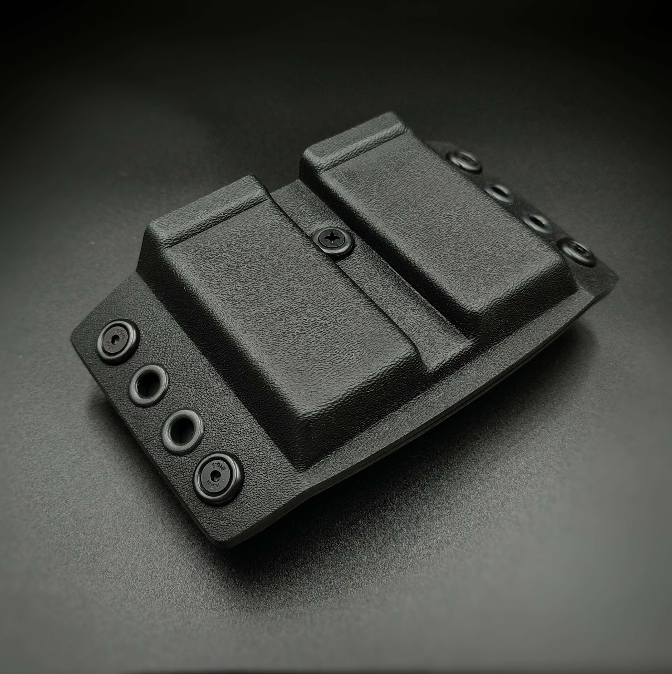 Ładownica na dwa magazynki do pistoletu przeznaczona do noszenia na zewnętrznej stronie pasa spodni (OWB).